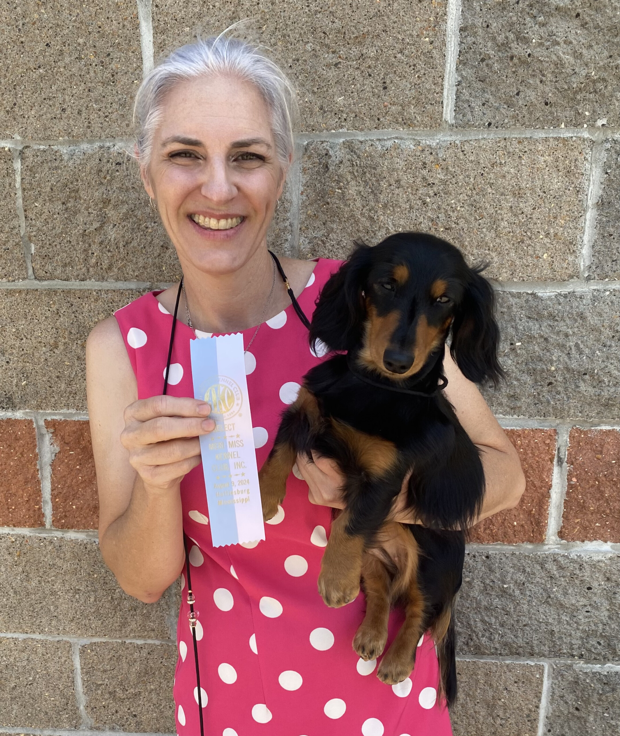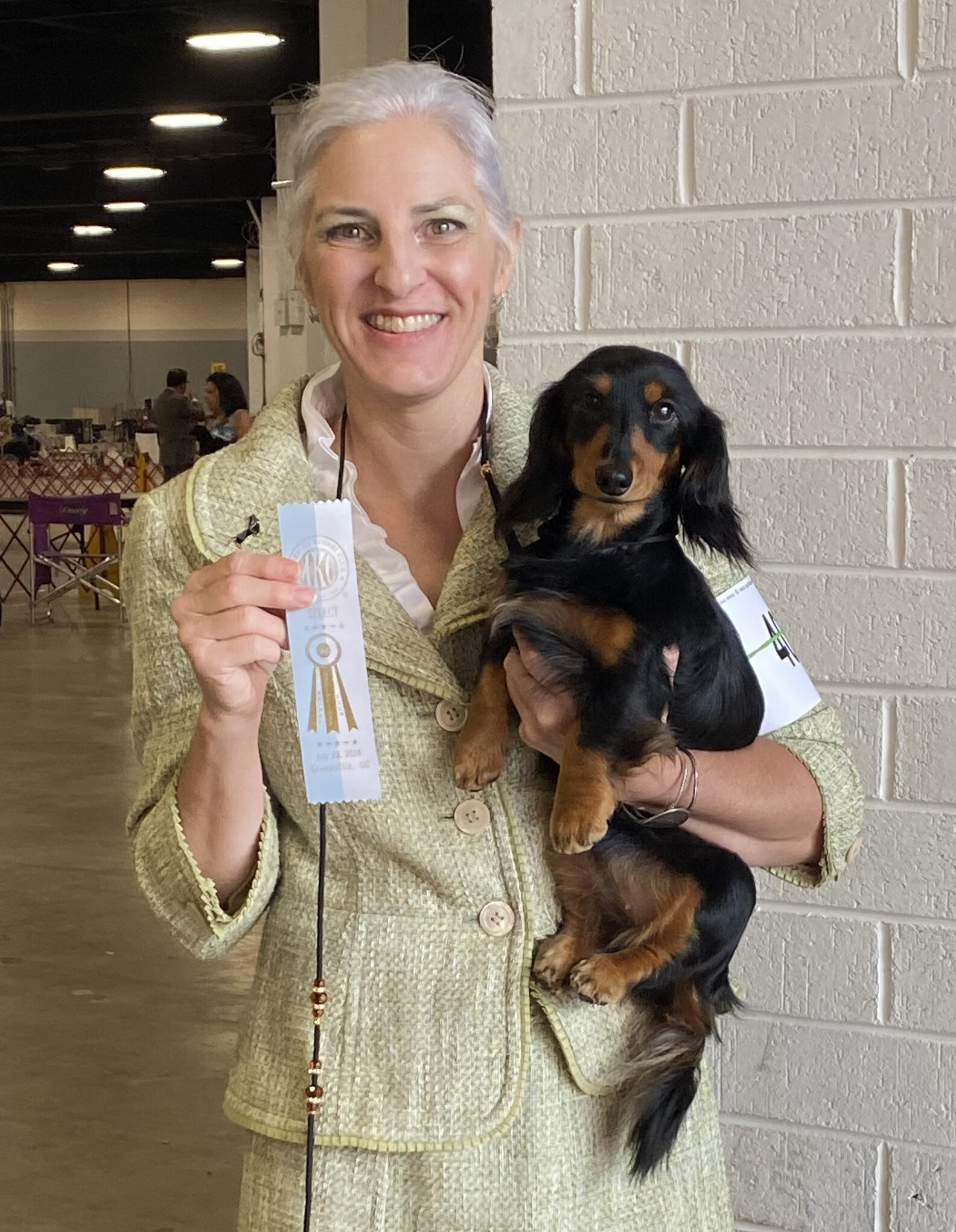 Augusta was born December 6, 2022 and joined our family on February 10, 2023. She won a 5-point major at the pre-shows to the National Championship at Royal Canin, and completed her AKC championship at 14 months old. She finished her Grand Championship 6 weeks later and her Bronze Grand Championship at 25 months old. She holds titles in Barn Hunt, Trick Dog, and FastCAT.